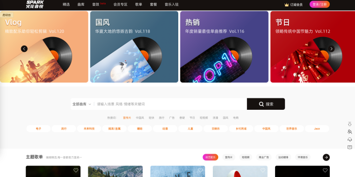直通海量优质曲库:创作者可以通过其旗下的罐头音乐平台「SPARK.ART」直接访问数万首精选的高品质背景音乐和音效